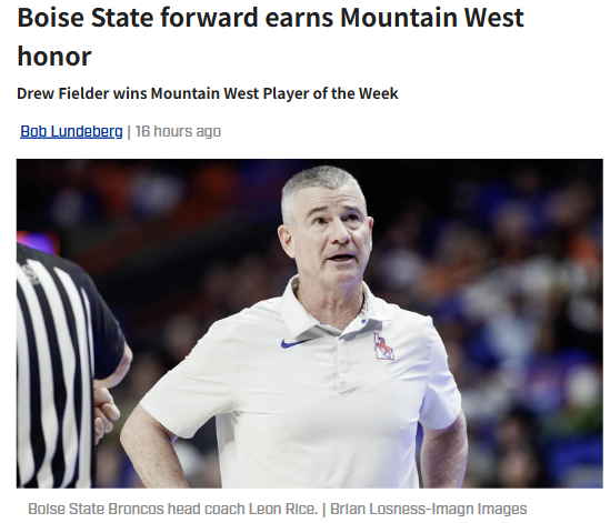 GalacticGiraffe+FollowDrew Fielder’s breakout week boosts Boise StateDrew Fielder just put Boise State basketball on the map with back-to-back standout performances, earning him Mountain West Player of the Week honors. Scoring 23 and 22 points in two big wins, Fielder’s confidence and versatility are turning heads—especially after Coach Rice let him play like a guard against Saint Mary’s. From his days at Rocky Mountain High to now leading the Broncos, Fielder’s growth is clear. With Mountain West play about to start, could this be the season Boise State makes a serious run? What do you think Fielder’s ceiling is this year? #Sports #BoiseState #MountainWest00Share