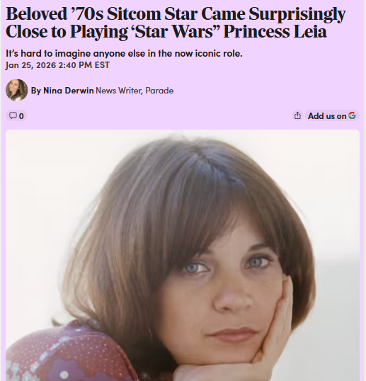 Brittany Rios+FollowCindy Williams Almost Princess Leia?! 🤯Did you know Cindy Williams from 'Laverne & Shirley' was nearly cast as Princess Leia in Star Wars? She even auditioned for George Lucas! Imagine how different the galaxy would’ve been if she’d landed the role instead of Carrie Fisher. Some fans say Williams’ sitcom fame worked against her, while others think Lucas just wanted someone younger. Total what-if moment! #Entertainment #Movies #StarWars00Share