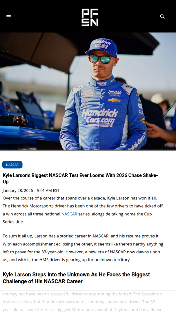 qglover+FollowLarson Faces His Toughest NASCAR Chase YetYung Money is about to hit uncharted territory! With NASCAR dropping the playoff format for 2026, Kyle Larson—already a two-time champ and the pride of Hendrick Motorsports—has to adapt fast. No more winner-take-all finales; now it’s all about season-long consistency. Can Larson’s raw speed and racecraft carry him through this shake-up, or will the new Chase era expose a weak spot? Fellow fans, is this the biggest test of his career? Let’s hear your takes! #Sports #Racing #NASCAR10Share