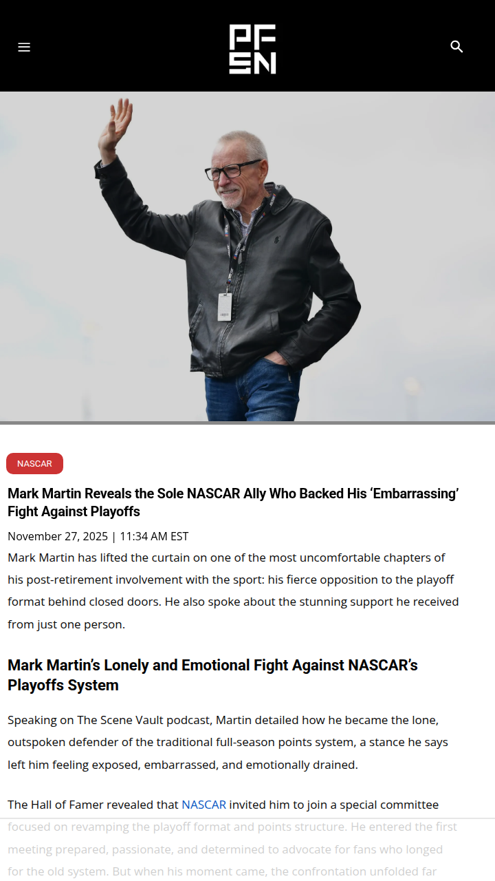 lisa79+FollowMark Martin’s Lone Stand vs NASCAR PlayoffsWow, hearing the Iron Man himself, Mark Martin, open up about his behind-the-scenes battle against the NASCAR playoffs system is wild. He went all-in for the old-school full-season points, but was left hanging—except for a quiet nod from Christopher Bell. Imagine being in a room with legends like Dale Jr. and getting total silence! Martin says he did it for us fans, not for himself. Respect for standing up for tradition, even when it’s not popular. #Sports #Racing #NASCAR80Share