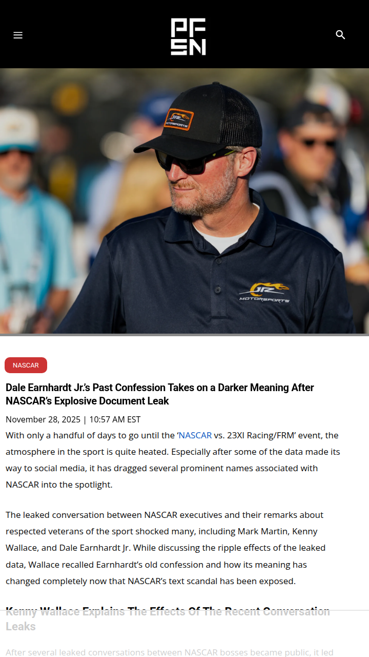 Jeremy Campbell+FollowDale Jr’s Words Hit Hard After NASCAR LeakWow, talk about drama in the NASCAR world! After those explosive leaked texts from the NASCAR brass, Kenny Wallace brought up an old chat with Dale Jr. where he admitted he never felt as powerful as people thought. Now, with legends like Mark Martin feeling betrayed, it’s clear Earnhardt’s worries about respect and influence were spot on. Makes you wonder how deep this goes and what’s next for the sport’s biggest names. #Sports #Racing #NASCAR415Share
