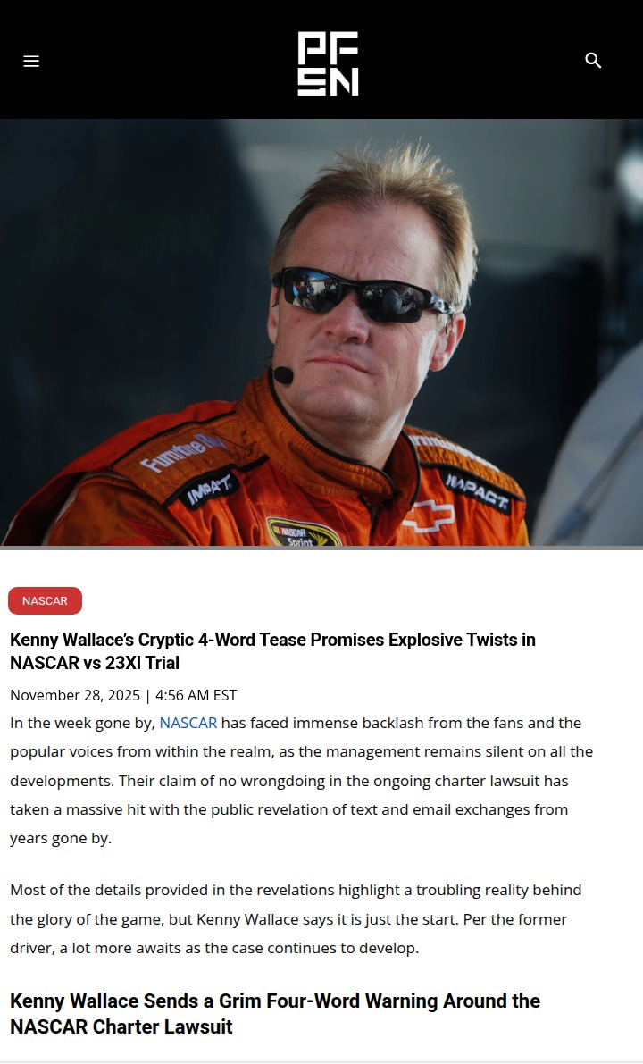 Kyle Bennett+FollowKenny Wallace Drops Bomb on NASCAR DramaWow, Kenny Wallace just threw more fuel on the fire in the NASCAR vs 23XI lawsuit! The Herminator’s four-word tease—“It’s only just begun”—has fans buzzing. With old emails and texts surfacing, it looks like we’re only seeing the tip of the iceberg. Wallace, always the straight shooter, hints there’s way more behind the scenes. Could this be a turning point for NASCAR? Buckle up, folks, this rivalry is about to get wild! #Sports #Racing #NASCAR237Share