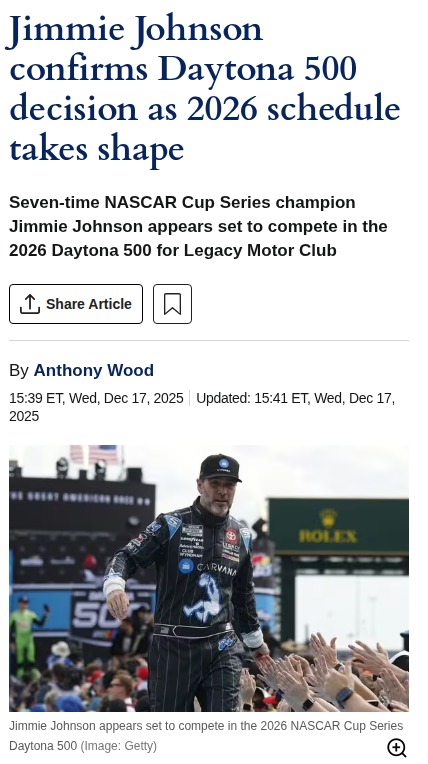Roger Franco+FollowJimmie Johnson’s Daytona 500 Comeback!Seven-time champ Jimmie “Superman” Johnson just dropped a Bob Ross-inspired bombshell—he’s back for the 2026 Daytona 500! After a stellar P3 finish in 2025, Johnson teased fans with a creative paint scheme reveal for the iconic Carvana 84 car. With King Jimmie returning to the Great American Race, can Legacy Motor Club finally break through for a win? Let’s hear your takes on Johnson’s legacy and the Daytona rivalry! #Sports #Racing #NASCAR10Share
