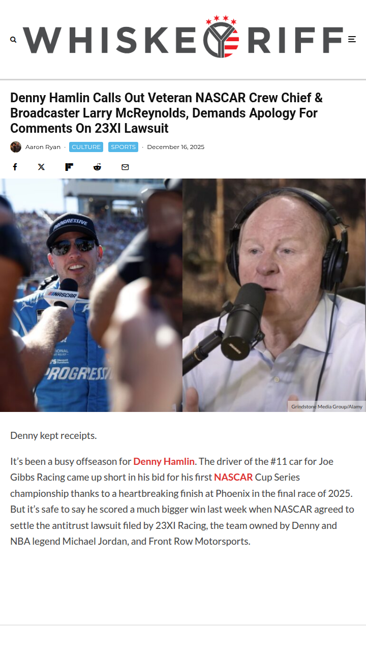 qglover+FollowHamlin vs Larry Mac: NASCAR Settlement FalloutWow, what a wild ride! Denny Hamlin (aka The Wheelman) isn’t letting Larry Mac off the hook after that 23XI/FRM vs NASCAR lawsuit finally settled. Hamlin’s calling for an apology from SiriusXM’s On Track crew after all the heat they threw at 23XI for challenging the old guard. Now, with permanent charters secured, it’s clear the new kids just changed the game. Thoughts on Hamlin’s clapback and what this means for NASCAR’s future? #Sports #Racing #NASCAR20Share