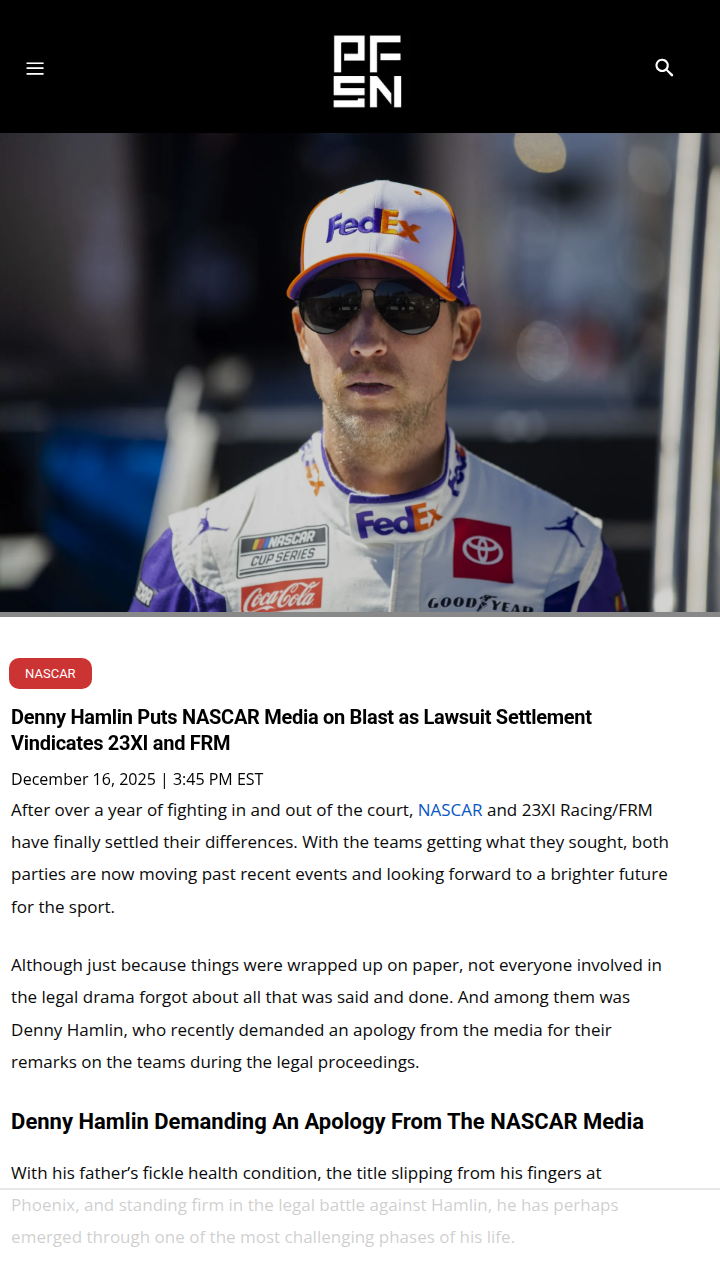 Victor Mathews+FollowHamlin Calls Out NASCAR Media After SettlementWow, Denny Hamlin isn’t holding back! After 23XI and FRM finally settled their lawsuit with NASCAR, The No. 11 wheelman went straight at the NASCAR media, demanding an apology for all the shade thrown during the legal drama. King Denny reminded everyone that his team and FRM were doubted and criticized, but now the facts are out and the score’s settled. Do you think the media owes 23XI and FRM an apology, or is this just classic Hamlin fire? #Sports #Racing #NASCAR10Share