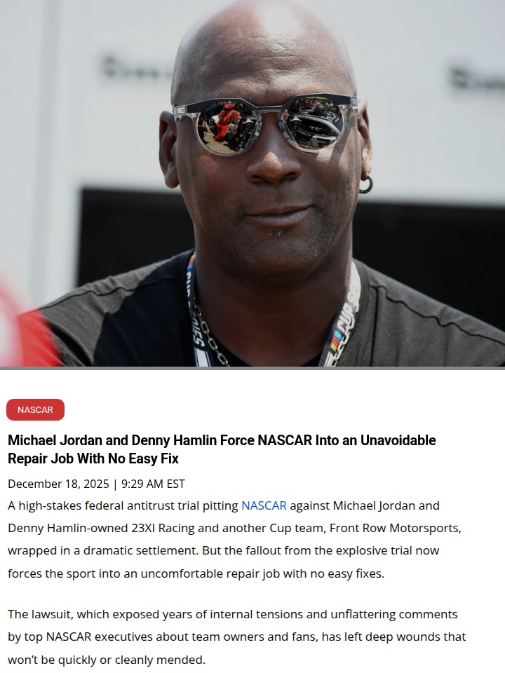 Victor Mathews+FollowMJ & Hamlin Shake Up NASCAR’s Power GameWow, talk about a seismic shift in NASCAR! King Jordan and Denny Hamlin’s 23XI Racing just forced the France family and NASCAR brass to finally grant permanent charters after a wild antitrust trial. The real drama? The trial aired years of behind-the-scenes beef—executives calling out owners, ugly texts, and a system that’s left teams and fans frustrated. Even with a settlement, the trust is shot. Can NASCAR really fix these deep rifts, or is this just the start of a new rivalry? #Sports #Racing #NASCAR10Share