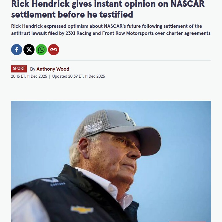 jennifer23+FollowNASCAR Settlement: Hendrick’s Take Sparks HopeWow, what a wild ride for NASCAR fans! After months of legal drama between 23XI, FRM, and the sanctioning body, the antitrust case is finally settled. The big moment? Rick Hendrick—Mr. H himself—shared his optimism for the sport’s future before even testifying. With “evergreen” charters now in place, teams have a more secure foundation, and the focus shifts back to racing. Did this settlement save NASCAR’s image, or is there more work to do? #Sports #Racing #NASCAR00Share