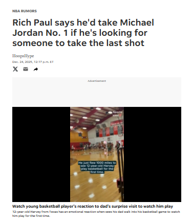 Amy Tanner+FollowLeBron vs MJ: Who Takes the Last Shot?Rich Paul just stirred the pot in the GOAT debate! Even though he’d build a team around King James, Paul says if it’s for the final shot, he’s handing the ball to MJ every time. Stats aside, he trusts Air Jordan’s clutch gene over LeBron’s. What do you all think—does MJ still own the last-second moment, or is LeBron closing the gap? #Sports #Basketball #NBA00Share