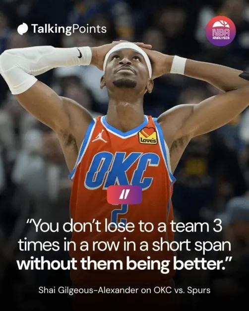summersivan+FollowSpurs hand Thunder a wake-up callOklahoma City Thunder’s red-hot start just hit a wall—San Antonio Spurs have beaten them three times, exposing some cracks in OKC’s armor. Even Shai Gilgeous-Alexander admitted the Spurs are the better team right now, and ex-NBA player Rashad McCants didn’t hold back, calling the Thunder’s record ‘fool’s gold’ thanks to an easy schedule. Is OKC’s dominance just hype, or can they bounce back and prove the doubters wrong? Thunder fans, Spurs fans, what do you think—is this a turning point or just a bump in the road? Let’s hear your take! #Sports #Basketball #NBA00Share