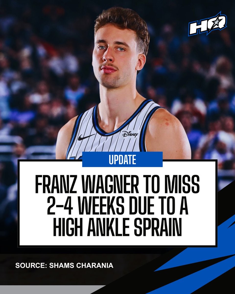 Edwin French+FollowFranz Wagner Has High Left Ankle Sprain, No Structural DamageOrlando got good news after a scary scene at MSG: Franz Wagner’s MRI showed no structural damage. He’s been diagnosed with a high left ankle sprain and the typical window is 2–4 weeks, per ESPN/Shams. Wagner was hurt in the first quarter vs. the Knicks and won’t be available for the Magic’s NBA Cup quarterfinal. #NBA #Magic #FranzWagner #InjuryUpdate #NBACup #OrlandoMagic10Share