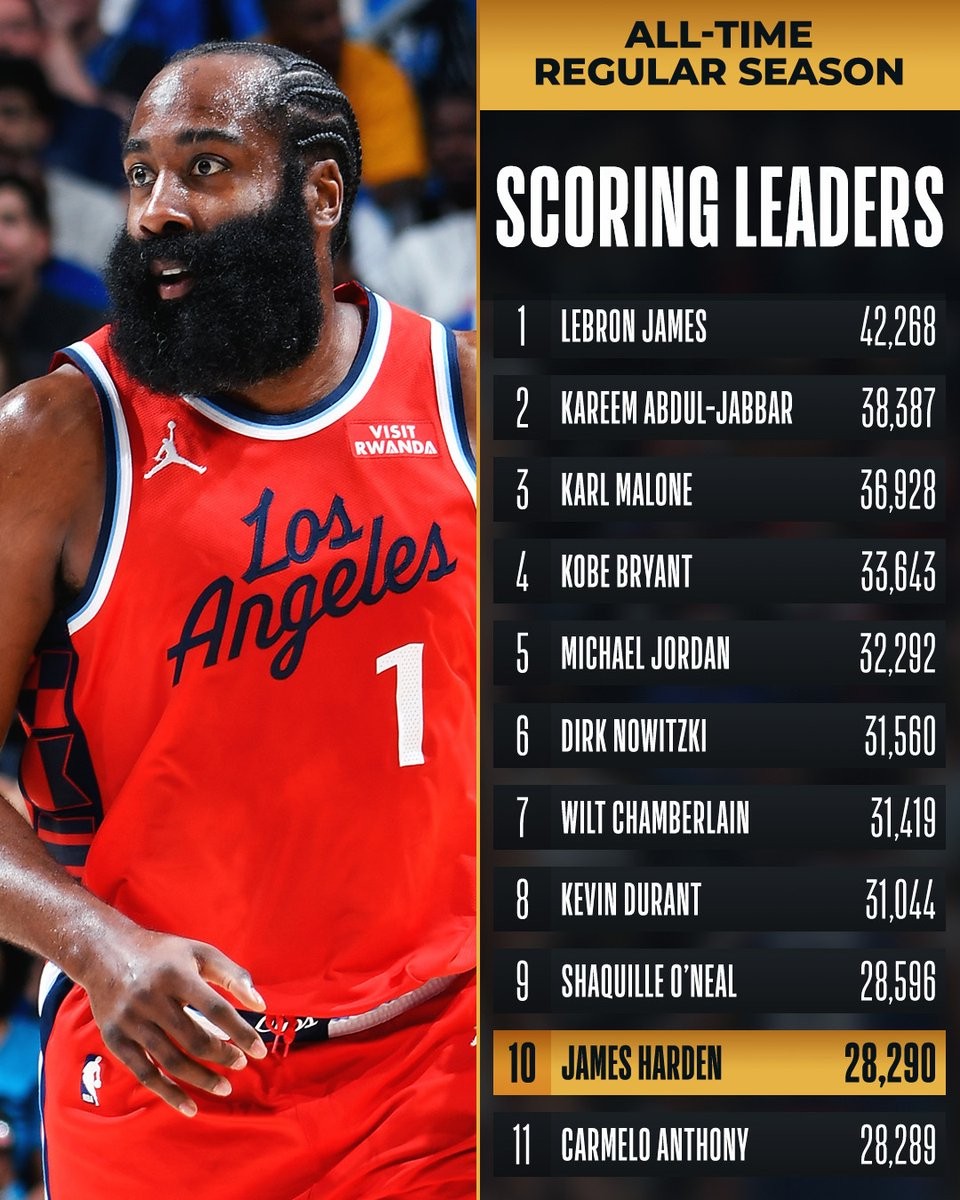 Pamela Owens+FollowJames Harden on LeBron’s scoring record after Clippers beat Lakers: “Don’t even say Bron… nobody is ever catching that.”The Clippers beat the Lakers 103–88 last night, and afterward James Harden had one of the most definitive takes you’ll hear about LeBron’s all-time scoring mark. When a reporter brought up Harden climbing the scoring list, Harden immediately shut down any “can you catch LeBron?” framing: “Don’t even say Bron in this conversation. That record, nobody is ever catching that.” Context matters here: Harden had 21 points and 10 assists in the win, while LeBron still dropped a season-high 36 in the loss—so the comment lands like respect from a peer who knows exactly how hard it is to stack points for that long. #NBA #Lakers #Clippers #LeBronJames #JamesHarden #NBAHistory #ScoringRecord #NBADiscussion2218Share