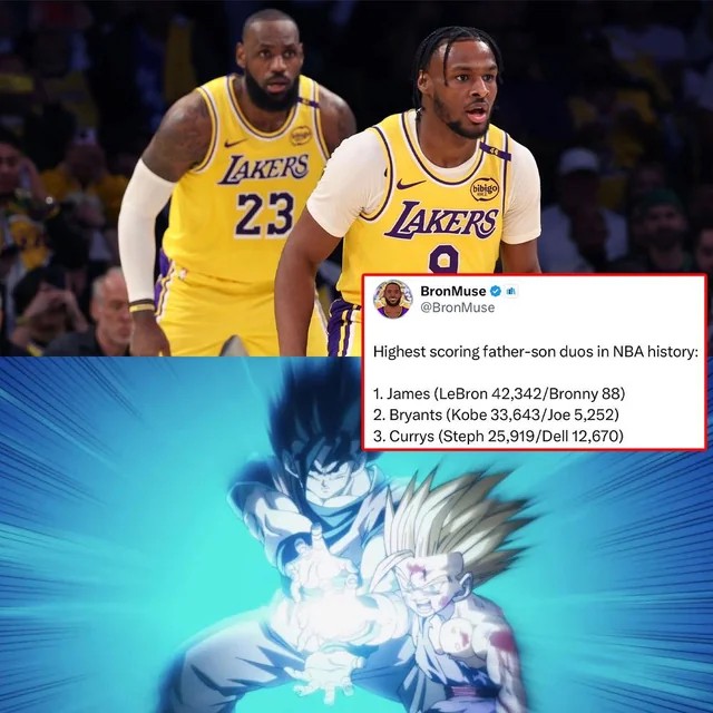 Beth Holland+FollowLeBron + Bronny = highest-scoring father–son duo in NBA historyWhat’s crazier: the points… or the fact they actually got to share an NBA court? #NBA #LeBronJames #BronnyJames #Lakers #NBAHistory #Basketball #NBAPartners #FatherAndSon #NBAFamily 10Share