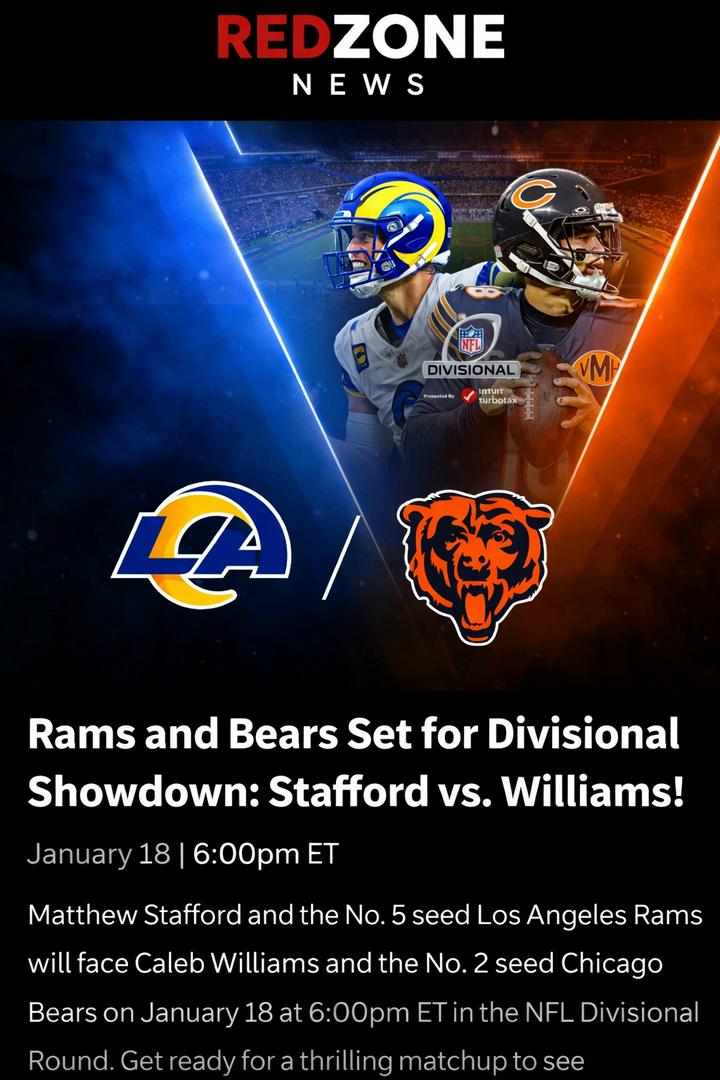 RZN+FollowOne field. One win. No excuses. Rams vs. Bears playoff football at its rawest. Kickoff: 7:00 PM EST / 6:00 PM CT 📍 Soldier Field, Chicago, IL #RedZoneNews #NFLDivisionalRound #RamsVsBears #NFLPlayoffs #SoldierField #PlayoffFootball #SundayNightFootball 212Share