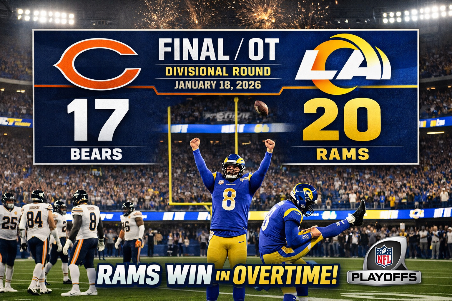 RZN+FollowThe Los Angeles Rams punched their ticket to the next round with a dramatic 20–17 overtime victory over the Chicago Bears in the NFL Divisional Playoffs. After a hard-fought battle that stayed close until the final whistle, the Rams sealed the win with a clutch game-winning field goal in OT. The Bears showed resilience late, forcing overtime, but Los Angeles capitalized when it mattered most. A tense playoff atmosphere, momentum swings, and high-stakes execution defined this matchup as the Rams kept their postseason hopes alive. 🏈🔥 #RamsWin #NFLPlayoffs #OvertimeThriller #BearsVsRams63Share