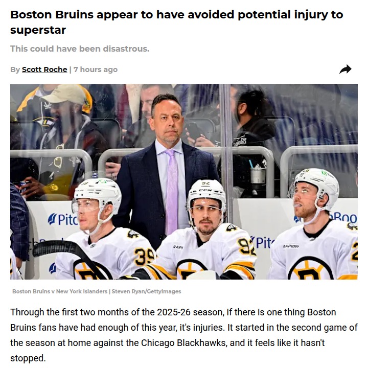 Christopher Li+FollowBruins keep rolling despite more injuriesCharlie McAvoy’s quick comeback from a scary puck-to-the-face injury has given the Bruins a boost, but the injury bug just won’t quit. Even as McAvoy logged big minutes and helped Boston grab another road win, two more players went down against the Jets. The team’s resilience is impressive, especially with prospects in Providence stepping up and making noise. Meanwhile, Tampa Bay’s Victor Hedman is out until February after elbow surgery, shaking up the Eastern Conference race. With so many key players sidelined, how do you think these injuries will shape the playoff picture? #Sports #IceHockey #NHL20Share