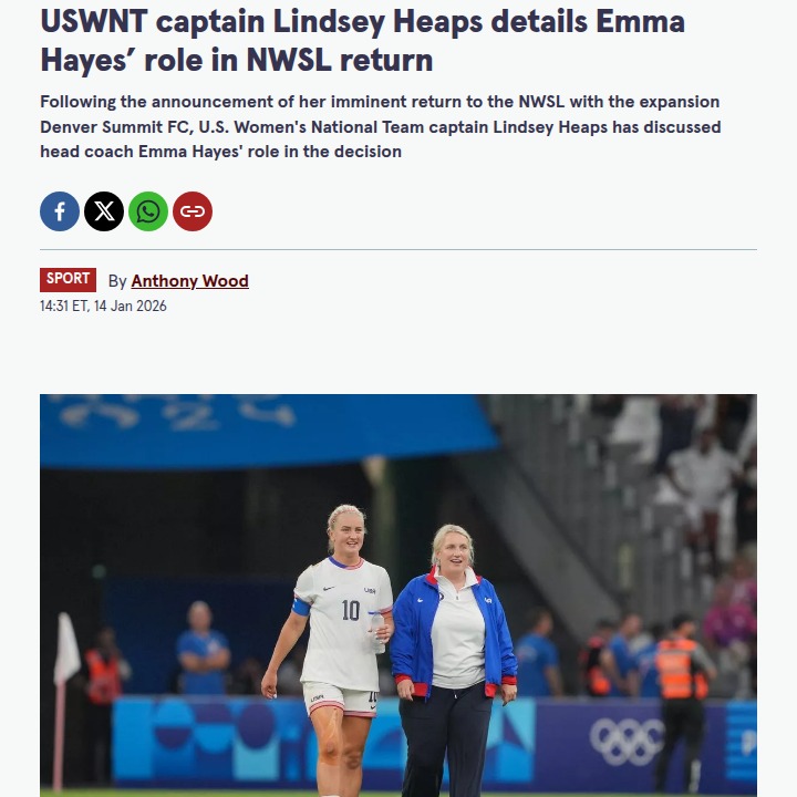 Timothy Thompson+FollowHeaps Heads Home: USWNT Captain Joins DenverHuge news for NWSL fans—Lindsey Heaps, the USWNT’s fearless captain and OL Lyonnes legend, is coming home to Colorado to lead Denver Summit FC in their debut season! The move shocked many, but Heaps credits coach Emma Hayes for helping her realize it was time to bring her star power back stateside. Can she inspire more USWNT stars to follow suit? #Sports #Soccer #NWSL10Share