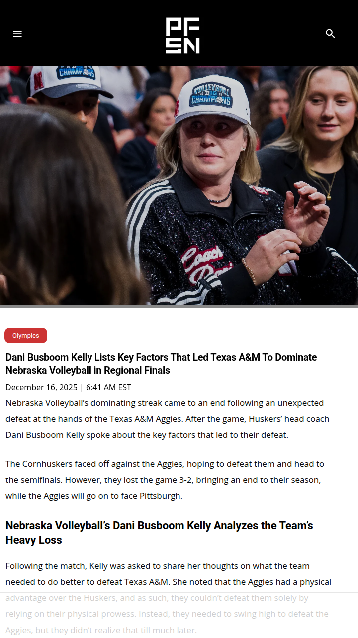 EchoingEagle+FollowTexas A&M stuns Nebraska in epic volleyball upsetTexas A&M just pulled off one of the wildest upsets in college volleyball, knocking out undefeated Nebraska 3-2 on their own court and punching their first-ever ticket to the Final Four. Nebraska hadn’t lost at home in three years, but the Aggies, led by Coach Jamie Morrison, showed serious grit—especially after Nebraska fought back from a 2-0 deficit. The final set was pure drama, ending 15-13 for A&M. Social media is on fire, with fans calling it the biggest win in Aggie sports history. What does this mean for the future of the program? #Sports #TexasAM #NebraskaVolleyball00Share
