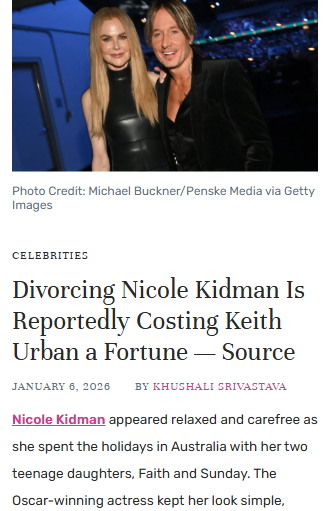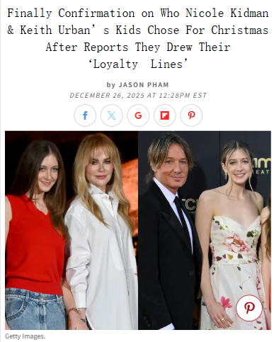 Joshua Freeman+FollowNicole Kidman’s Girls Picked Their SideNicole Kidman and Keith Urban’s daughters, Sunday Rose and Faith Margaret, just made their holiday loyalty crystal clear—they’re spending Christmas down under with Nicole after the big split. Word is, the girls feel closest to their mom, who’s been their rock through it all. Keith’s reportedly heartbroken, but both parents are keeping things drama-free and focused on co-parenting. Family dinners, yoga, and journaling are the new normal at Nicole’s place! #Relationships #NicoleKidman #KeithUrban80Share
