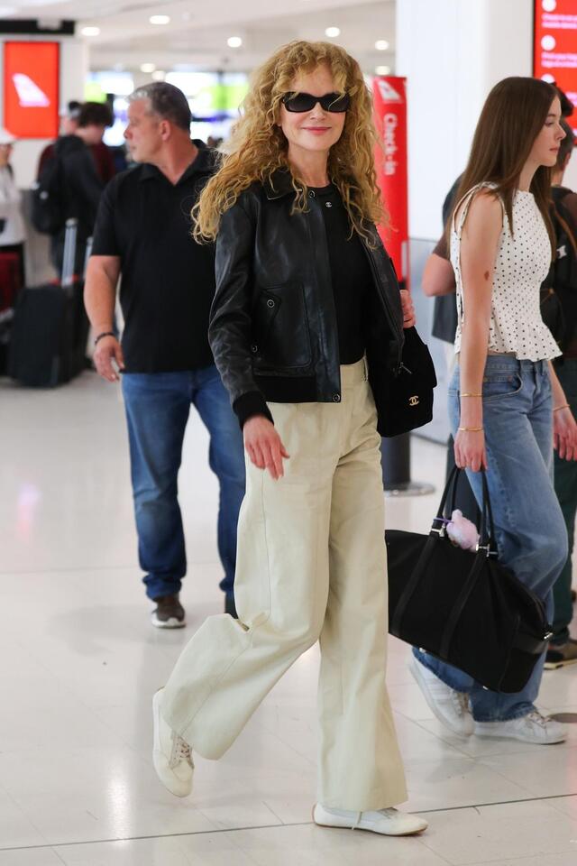 lstevens+FollowNicole Kidman’s Airport Chanel Sneaker FlexNicole Kidman just made airport style look easy, rocking head-to-toe Chanel with a twist—she swapped out fancy heels for the slim sneaker trend. Her look was all about that laid-back luxury: monogram tank, cropped leather bomber, rare Chanel hobo bag, and wide-leg khakis. The real mystery? Her gumsole trainers that have everyone guessing the brand. Nicole’s proving you can stay comfy and still serve major fashion goals at the terminal! #Beauty #NicoleKidman #Chanel32Share