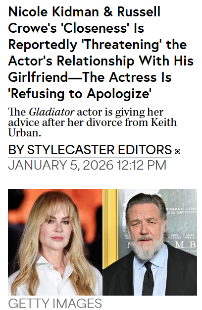 Gina Reynolds+FollowNicole & Russell’s Friendship Sparks Drama 😳Nicole Kidman and Russell Crowe’s close bond is causing major waves! Rumor has it Russell’s girlfriend, Britney Theriot, feels threatened by how much Nicole is leaning on him post-divorce. Nicole’s not backing down or apologizing, insisting it’s all platonic—but the fandom is split. Is it just a supportive friendship, or is there more going on? This plot twist has everyone talking! #Entertainment #Celebrity #NicoleKidman10Share
