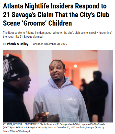 michele24+FollowAtlanta’s club scene: Culture or concern?Atlanta’s nightlife isn’t just about music and parties—it’s shaping the way kids grow up here. 21 Savage’s comments about being ‘groomed’ by the city’s club culture hit home for many locals, who see how early exposure to the party scene can influence young people’s choices. With clubs woven into the city’s fabric and even family members working in the industry, it’s easy for teens to get swept up. Some say it’s up to adults to set better boundaries. Is Atlanta’s club culture just part of the city’s identity, or is it time for a change? #Entertainment #Atlanta #Nightlife00Share