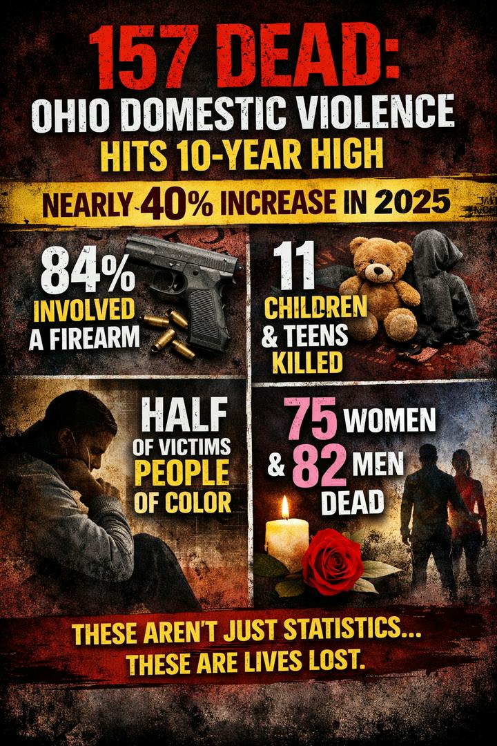Death Lies & Alibis+Follow🚨 157 DEAD: OHIO DOMESTIC VIOLENCE HITS 10-YEAR HIGH Ohio recorded 157 domestic violence-related deaths in 2025 — a nearly 40% jump from the year before and the highest total in a decade. According to the Ohio Domestic Violence Network: • 84% of the deaths involved a firearm • 11 victims were children or teens • Half of the primary victims were people of color • 75 women and 82 men lost their lives Hamilton County Prosecutor Connie Pillich called the numbers “alarming,” noting felony domestic violence cases have more than doubled. Prosecutors say removing firearms from violent offenders remains a priority, but fear, stigma, and reluctance to report abuse continue to stand in the way. In Cincinnati, the YWCA of Greater Cincinnati opened the city’s only dedicated emergency shelter for intimate partner violence survivors and their children, doubling capacity. City Council is considering allocating $200,000 to help with security and facility upgrades as funding cuts strain resources. Officials say enforcement alone won’t solve the crisis. Prevention, safe housing, victim advocacy, and community support are critical. These aren’t just statistics. They are lives lost — and families forever changed. #DomesticViolence #OhioNews #BreakingNews #GunViolence #SurvivorSupport #EndDV01Share