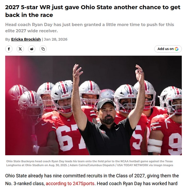 Chad Williams+FollowOhio State back in the hunt for 5-star WRKesean Bowman, one of the nation’s top wide receivers for 2027, just delayed his college commitment, and that’s huge news for Ohio State fans. With the Buckeyes already boasting a top-3 recruiting class, this gives Coach Ryan Day a fresh shot at landing another elite playmaker. Tennessee and Miami have been leading, but with Bowman’s decision on hold, Ohio State could swoop in and change the game. It’s another reminder that in recruiting, things can shift overnight. What do you think—can Day pull off another big win for the Buckeyes? #Sports #Football #OhioState00Share