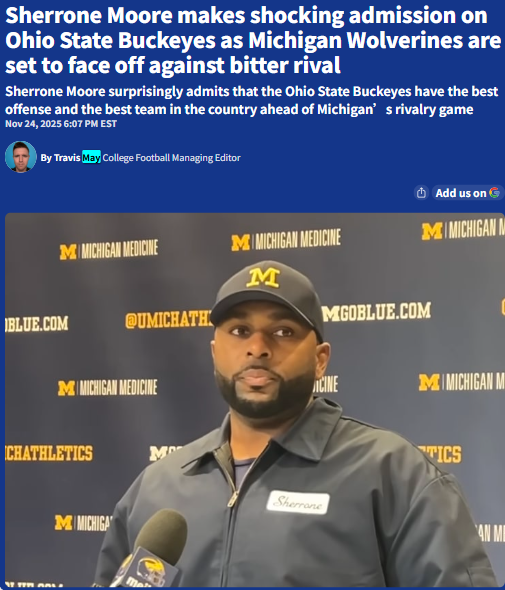Chad Williams+FollowMoore’s bold praise heats up Ohio State vs MichiganMichigan head coach Sherrone Moore just called Ohio State the “best team in the country”—right before the Wolverines face them in the most intense rivalry in college football. That’s not something you hear every day from a Michigan coach! With both teams stacked and Ohio State ranked #1, the stakes for this year’s showdown feel even higher. Moore says the energy around this game is impossible to describe, and anyone who’s been to The Game knows it’s on another level. How do you see this rivalry shaping up with Moore’s surprising comments? #Sports #Football #OhioStatevsMichigan00Share