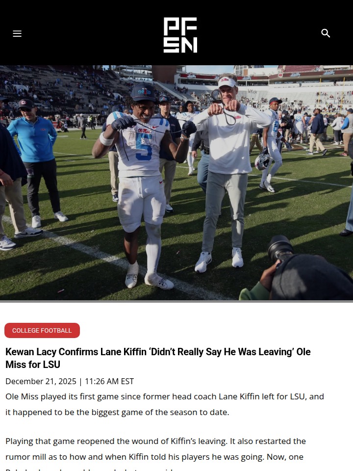phughes+FollowKiffin’s Exit: Lacy Sets the Record StraightRebels fans, the Lane Train’s departure to LSU still stings, but Kewan Lacy just dropped some real talk: Coach Kiffin never actually told the team he was leaving! Lacy said he only got vague playoff talk before the AD announced Pete Golding as the new head coach. Despite the confusion, the squad rallied for a huge playoff win and now eyes revenge against the Dawgs in the Sugar Bowl. Thoughts on how this went down? #Sports #Football #OleMiss00Share