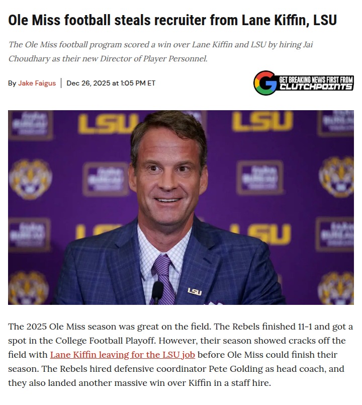 Aaron Taylor+FollowOle Miss lands key staffer, heats up rivalryOle Miss just pulled off a major move by bringing Jai Choudhary back from LSU as their new Director of Player Personnel. Choudhary, seen as a rising star, was with Ole Miss before heading to LSU last year—now he’s returning to Oxford, thanks to his strong connection with new GM Austin Thomas. This isn’t just a staff change; it’s a direct win over Lane Kiffin, who left Ole Miss for LSU and has been busy building his own team in Baton Rouge. With Pete Golding stacking up talent in the front office, the Rebels are making it clear they’re not backing down. Thoughts on this new chapter in the Ole Miss-LSU rivalry? #Sports #Football #OleMiss00Share
