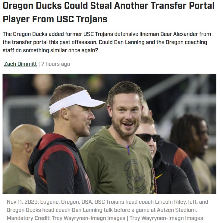 GalacticGiraffe+FollowOregon Ducks eye another big USC transferOregon fans, get ready—another key USC defensive lineman could be heading to Eugene. After Bear Alexander’s successful transfer last year, the Ducks are now in the mix for Devan Thompkins, who’s coming off a solid season with the Trojans. If Thompkins joins, Oregon would not only boost its defensive line but also snag talent from a Big Ten rival. With the transfer portal heating up and the Ducks still chasing a championship, this move could shake up next season’s roster. What do you think—should Oregon keep targeting rivals for transfers? #Sports #OregonDucks #TransferPortal00Share