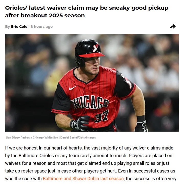 Renee Ramirez+FollowWhy the Orioles’ Will Robertson move could matterBaltimore just grabbed outfielder Will Robertson off waivers, and while most waiver claims barely make a ripple, this one feels different. Robertson exploded last season in Triple-A, showing off real power and a much-improved bat. The Orioles’ outfield is a question mark right now, so having a guy with upside—even if he’s a long shot—could be a game-changer if injuries hit or someone slumps. Sometimes, these low-risk moves end up being the ones fans talk about all season. What do you think—could Robertson be the next surprise contributor? #Sports #Baseball #Orioles00Share