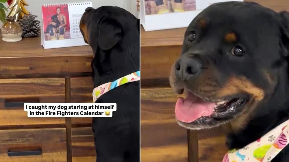 Miss Angela Murray+FollowBeau the Rottweiler’s Calendar Crush 😍Did anyone else catch Beau from @beauandbarneyy totally mesmerized by his own photo in the Fire Fighters Calendar? The way he checks himself out and then grins at the camera is pure gold. Fans are split: is Beau actually recognizing himself, or just loving the attention? Either way, he’s got main character energy and everyone’s obsessed with his confidence! #Entertainment #Painting #Rottweiler00Share