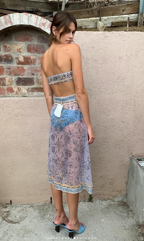 Michael Weiss+FollowKaia Gerber’s Sheer Skirt Stole ParisKaia Gerber just broke the internet with her latest Paris Fashion Week look! She rocked a totally sheer midi skirt that showed off her blue underwear, plus a matching bralette and blue heels. Stylist Doria Santlofer dropped the pics on Instagram, and fans are obsessed with the bold, floral vibe. Kaia’s definitely setting the bar for daring fashion moments this season. Would you ever try a look this sheer? #Beauty #KaiaGerber #ParisFashionWeek121Share
