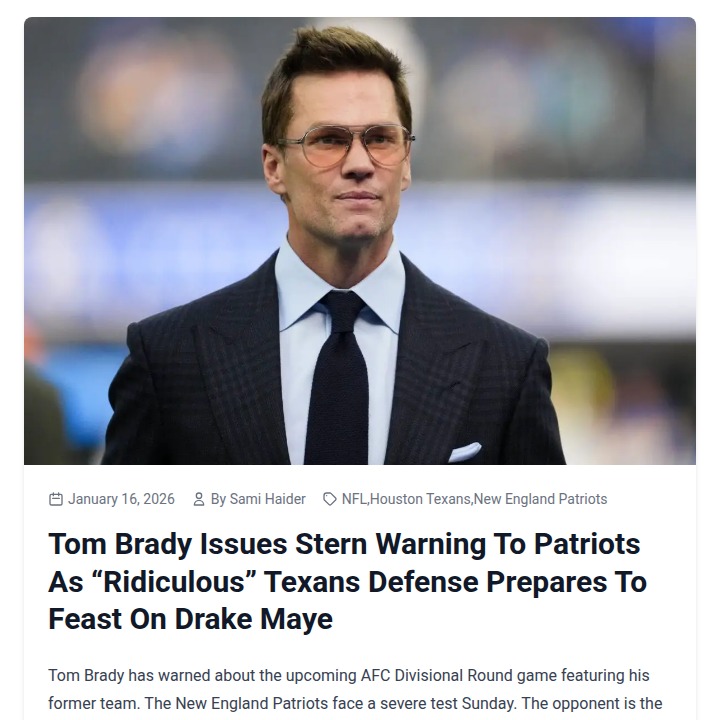Amy Williams+FollowTexans D Ready to Test Patriots’ Rookie MayeKing Brady just dropped some real talk on The Herd—he’s calling the Texans’ defense “ridiculous” and warning Foxborough to brace for a true playoff battle. Drake Maye’s first postseason run as the Pats’ QB1 is about to get real against a Houston pass rush that’s been feasting all year. Can Josh McDaniels scheme up enough protection to keep Maye upright and spark a new era? Or will the Texans spoil the party? Sunday’s showdown feels like a turning point for New England. #Sports #Football #Patriots00Share