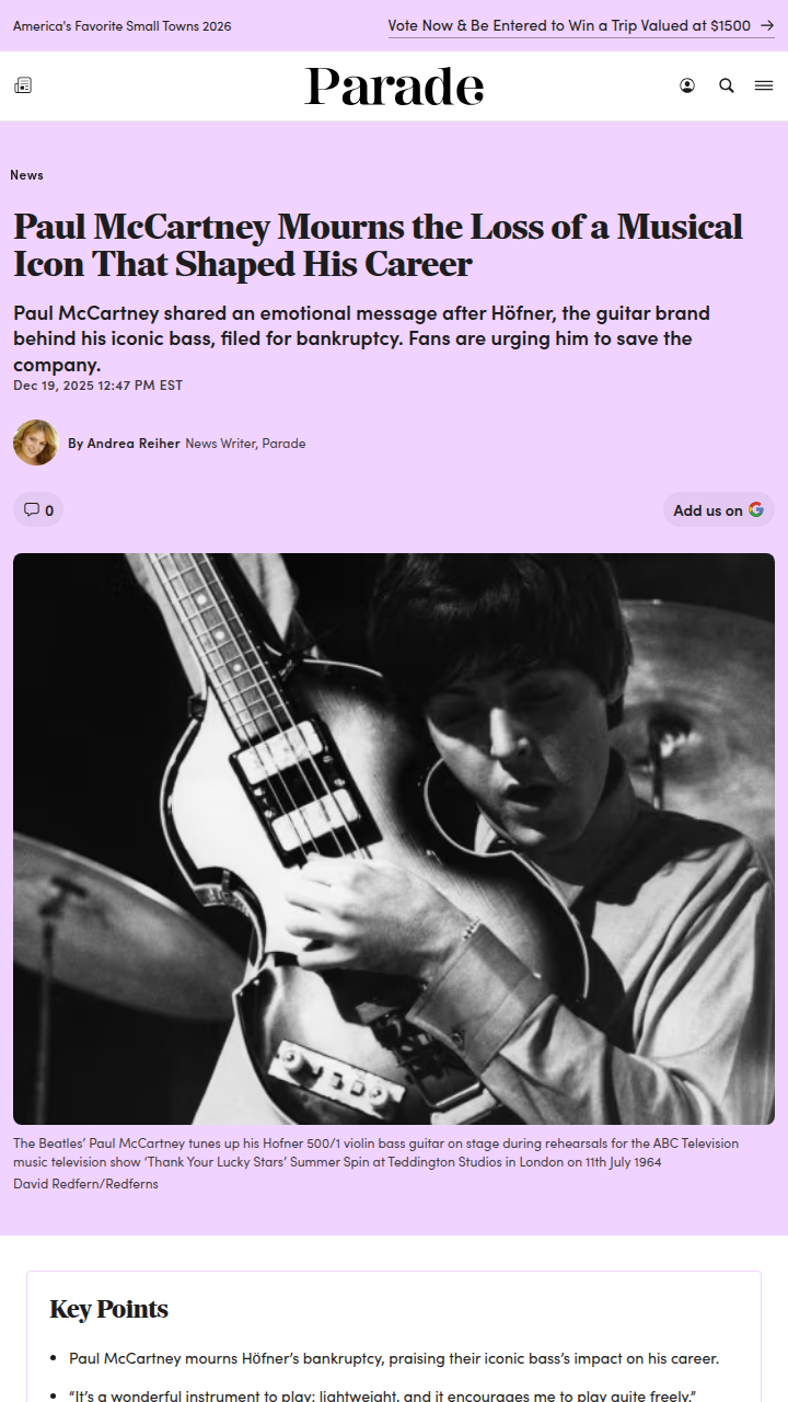 sfrazier+FollowPaul & Höfner: Should He Save the Iconic Bass? 🎸McCartney fans are buzzing after Paul’s emotional post about Höfner’s bankruptcy. Some are convinced he should buy the company to keep the legendary violin bass alive, while others say it’s not his responsibility. The debate is wild—did Paul make Höfner, or did Höfner make Paul? If he steps in, would it be for the fans or his own legacy? #Entertainment #Music #PaulMcCartney00Share
