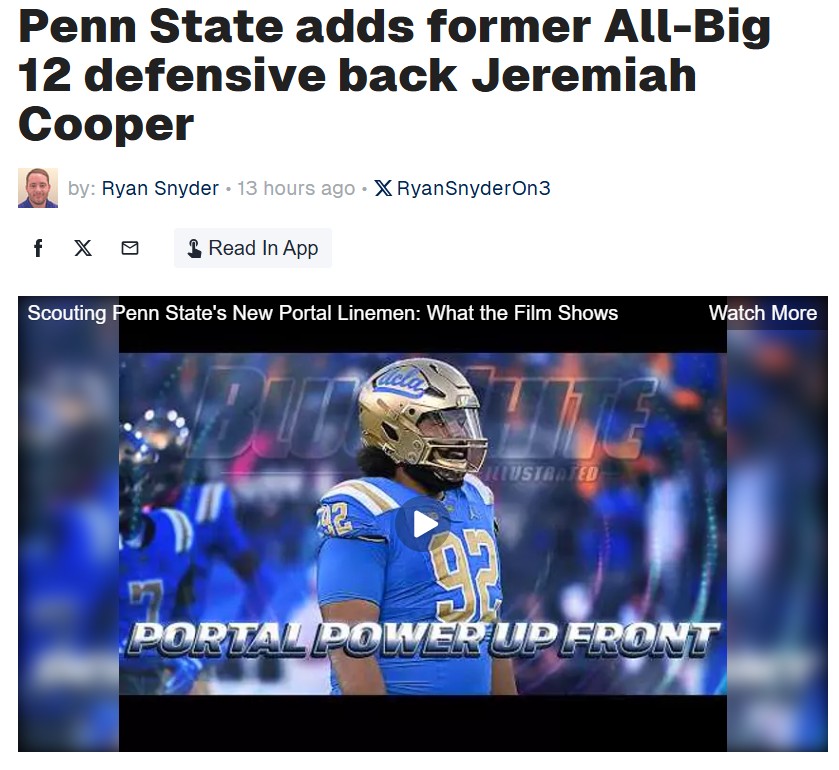 Michael Pitts+FollowPenn State’s secondary just got a major boostJeremiah Cooper, one of the Big 12’s top defensive backs, is bringing his playmaking skills to Penn State for his final college season. After a standout run at Iowa State—where he racked up 134 tackles and 8 interceptions—Cooper’s versatility at both corner and safety could shake up the Nittany Lions’ defense. Even with injuries last year, he managed to snag an interception and limit QBs to just 35.7% completions. With his veteran presence and proven track record, Cooper’s arrival is set to make Penn State’s secondary a real force. How do you think he’ll fit into the lineup? #Sports #Football #PennState00Share