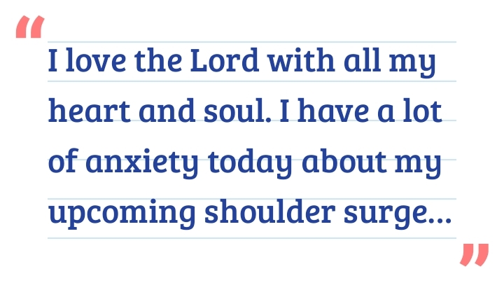 LuAnn Head+FollowI love the Lord with all my heart and soul. I have a lot of anxiety today about my upcoming shoulder surgery on Thursday. This is the perfect verse to help me get through those anxious times. #Philippians_4_6302Share