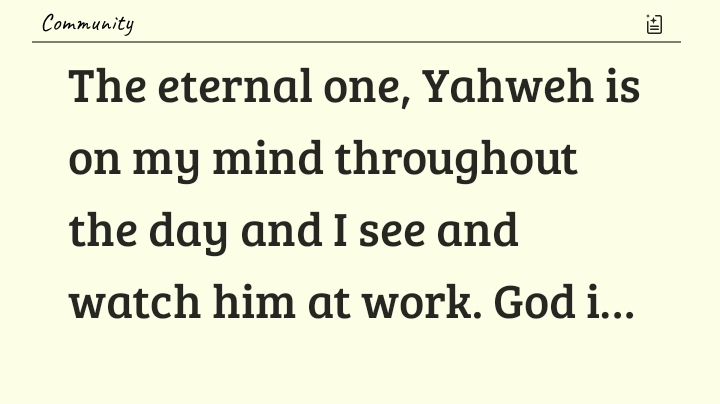 Timothy Degenhardt+FollowThe eternal one, Yahweh is on my mind throughout the day and I see and watch him at work. God is good. Watch over our leaders and family Lord , take away my anxiety and help me replace with prayer. iIn Jesus name . #Philippians_4_671Share