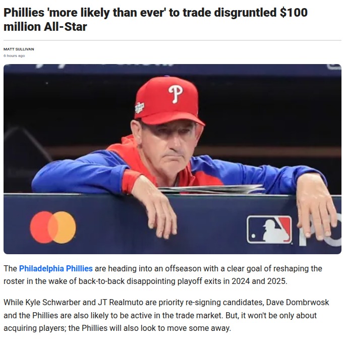 Catherine Reeves+FollowPhillies shakeup: Castellanos likely outNick Castellanos’ days in Philly look numbered. After a rocky end to the 2025 season—including a benching and some clubhouse tension—the Phillies are reportedly more motivated than ever to move on from their $100 million All-Star outfielder. With just one year and $20 million left on his contract, a trade seems almost inevitable. This move could free up cash and a roster spot for new talent, but it also marks the end of a big-name era. How do you feel about the Phillies possibly parting ways with Castellanos? Would you rather see him stay or is it time for a fresh start? #Sports #Baseball #Phillies36Share