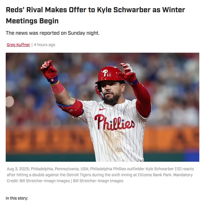 Timothy Huff MD+FollowPirates Go Big for Schwarbombs: Reds RespondWow, Bucs fans—did you ever expect the Pirates to throw down a $100M+ offer for Kyle Schwarber? That’s a huge move for a team that’s usually quiet in free agency. The Reds aren’t sitting back either, making a push for their hometown slugger after his monster 56-HR season. If Schwarber lands in Pittsburgh, this rivalry could get even spicier. What do you think—will the Pirates finally outbid the Reds for a big bat? #Sports #Baseball #Pirates43Share