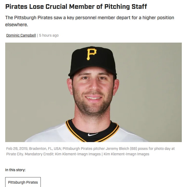 Cassandra Reed+FollowPirates face major shakeup in pitching staffLosing Jeremy Bleich, the architect behind the Pirates’ pitching success, is a real gut punch for Pittsburgh fans. Bleich’s fingerprints are all over the team’s recent rise, from developing stars like Paul Skenes to shaping a deep bullpen. Now, with Bleich heading to the Diamondbacks as assistant GM, the Pirates are left scrambling to fill a role that’s become crucial to their identity. With other front office changes happening too, it feels like a turning point—will the Pirates keep their pitching edge, or is a step back coming? What do you think this means for the team’s future? #Sports #Baseball #Pirates00Share