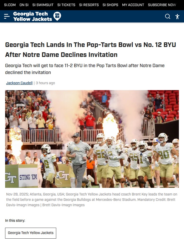 Michael Pitts+FollowPop-Tarts Bowl: Cougars vs Yellow Jackets ShowdownGet ready for a spicy Pop-Tarts Bowl as BYU’s Cougars, still stinging from the Big 12 snub, face Georgia Tech’s Yellow Jackets, who are hungry for their first double-digit win season in a decade. The real battle? BYU’s relentless ground game vs. Haynes King’s dual-threat magic. Will Sitake’s squad finally earn playoff respect, or does Georgia Tech pull off a bowl upset? Let’s hear your predictions! #Sports #Football #PopTartsBowl00Share