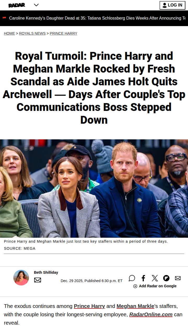 Christian Jones+FollowStaff Exodus at Archewell? 👀Another Archewell shakeup! James Holt, Harry and Meghan’s right-hand man since 2017, just quit right after their top comms boss left too. Fans are debating if Meghan’s rumored “dictator in high heels” behavior is behind the mass staff walkouts. Is it just bad luck, or is there more royal drama brewing behind the scenes? #Entertainment #Celebrity #PrinceHarry10Share