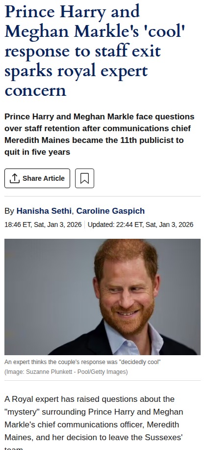 xpotter+FollowRoyal Staff Shakeup: Sussexes' 'Cool' Goodbye 🧐Prince Harry and Meghan Markle's latest staff exit is stirring up the fandom! Their chief comms officer, Meredith Maines, left after just 10 months, and royal watchers are buzzing about the couple’s oddly 'cool' response. With Maines being the eleventh publicist to leave in five years, some are speculating about behind-the-scenes drama. Are the Sussexes tough to work for, or is there more to the story? #Entertainment #Celebrity #PrinceHarry132Share