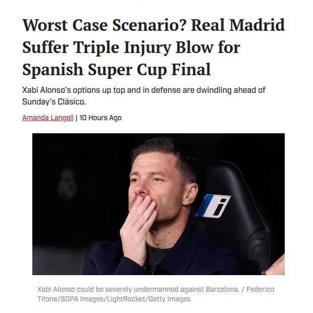 kochcandice+FollowClásico Final: Los Blancos’ Injury CrisisTalk about bad timing—Los Blancos are limping into the Spanish Super Cup Clásico with big question marks over Rüdiger, Asencio, and Rodrygo. If the German wall can’t go, we might see Dean Huijsen thrown into the fire against Barça’s front line. And with Rodrygo’s hamstring acting up, King Kylian’s surprise trip to Jeddah suddenly feels crucial. Can Xabi Alonso’s patched-up defense hold off the Catalans, or is disaster looming? #Sports #Soccer #RealMadrid10Share