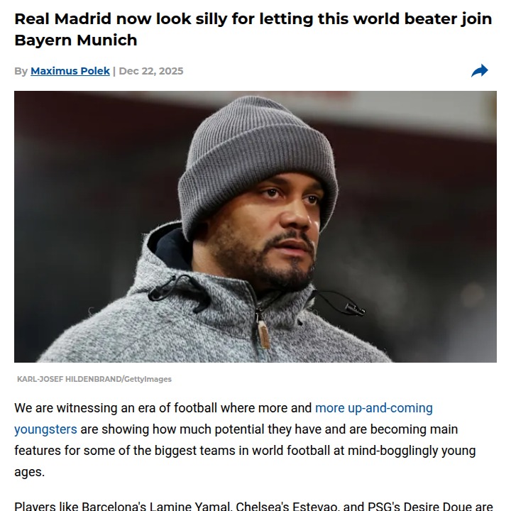 Malik Williams+FollowDid Los Blancos Fumble the Next Superstar?Hard to believe Real Madrid let Lennart Karl slip through their fingers! The 17-year-old is tearing it up for Bayern, smashing records as the youngest to score in three straight Champions League games. Turns out, Los Blancos had him on trial at just 10, but contract talks broke down. Now, watching Karl shine in Munich, Madridistas have to wonder if this is one transfer miss that’ll haunt the Bernabeu for years. #Sports #Soccer #RealMadrid00Share
