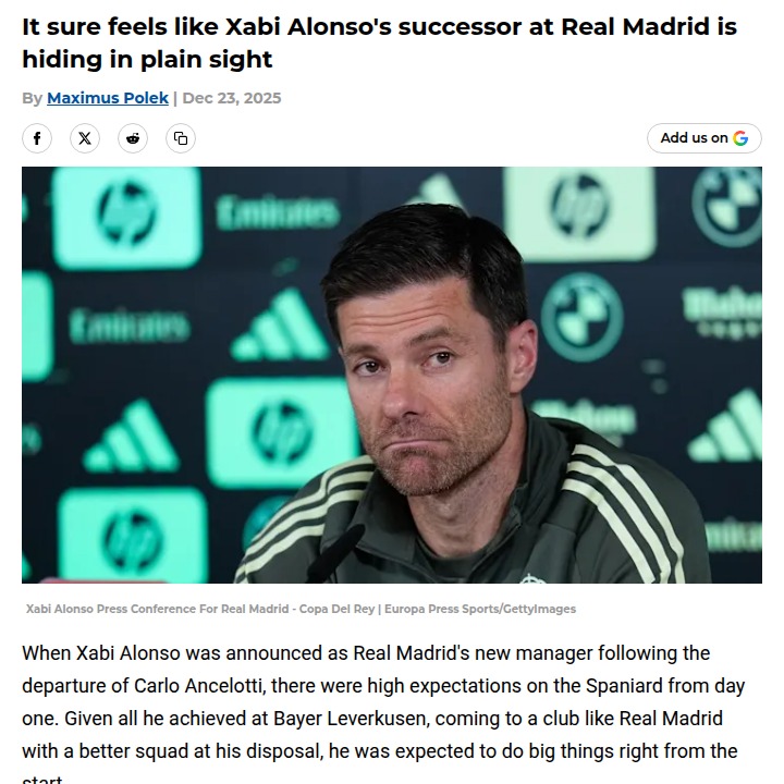 Tara Moran+FollowIs Xabi Alonso Safe at Real Madrid?Los Blancos fans, what do you make of the latest drama swirling around Xabi Alonso? Despite three straight wins, the Spanish press is still buzzing about his future, with some pundits claiming the board and Florentino Perez aren’t backing him. Even with the squad reportedly behind Alonso, the silence from the top is deafening. Is this just classic Madrid pressure, or is the Maestro really on the hot seat? #Sports #Soccer #RealMadrid00Share