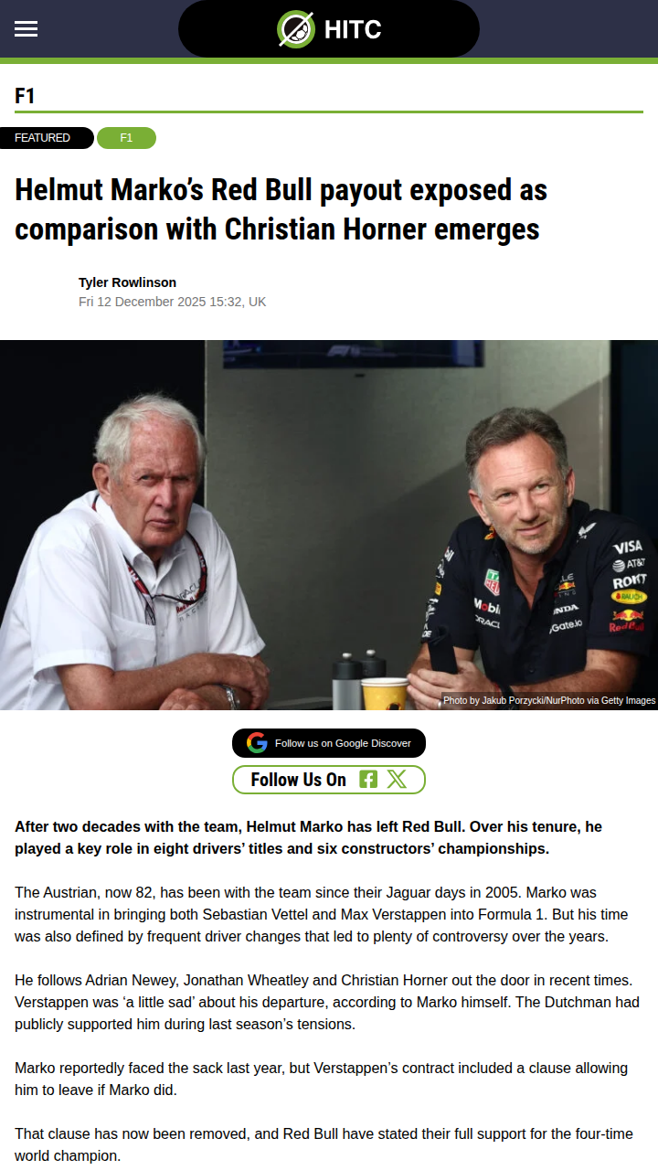 Isabel Collier+FollowRed Bull’s Power Shuffle: Marko vs HornerHelmut Marko’s exit from Red Bull after two decades is shaking up the paddock. The ‘Doctor’ was key in bringing in legends like Seb and Mad Max, but his controversial driver swaps kept fans buzzing. Now, with Marko’s £8.7m payout paling next to Horner’s massive £80m, it’s clear the team is in full reset mode. Who’s stepping up next? Mintzlaff’s name is in the mix, but no Vettel comeback—yet. Thoughts on who should fill the void? #Sports #Racing #RedBullRacing00Share