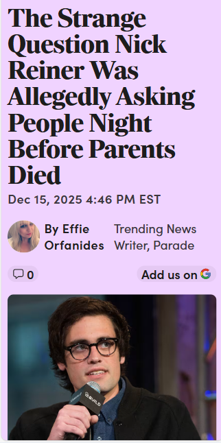 Amanda Robbins+FollowInside the shocking Reiner family tragedyNick Reiner’s bizarre behavior at a Hollywood party—asking guests if they were famous and arguing loudly with his father—was just hours before his parents, Rob and Michele Reiner, were found murdered in their home. Now, Nick is in custody, charged with their deaths, and the community is left reeling. Friends and neighbors are struggling to make sense of how a family gathering could turn so dark, so quickly. What do you think drives someone to such extremes, and how do families cope when tragedy strikes so close to home? #Entertainment #Celebrity #ReinerFamily2227Share